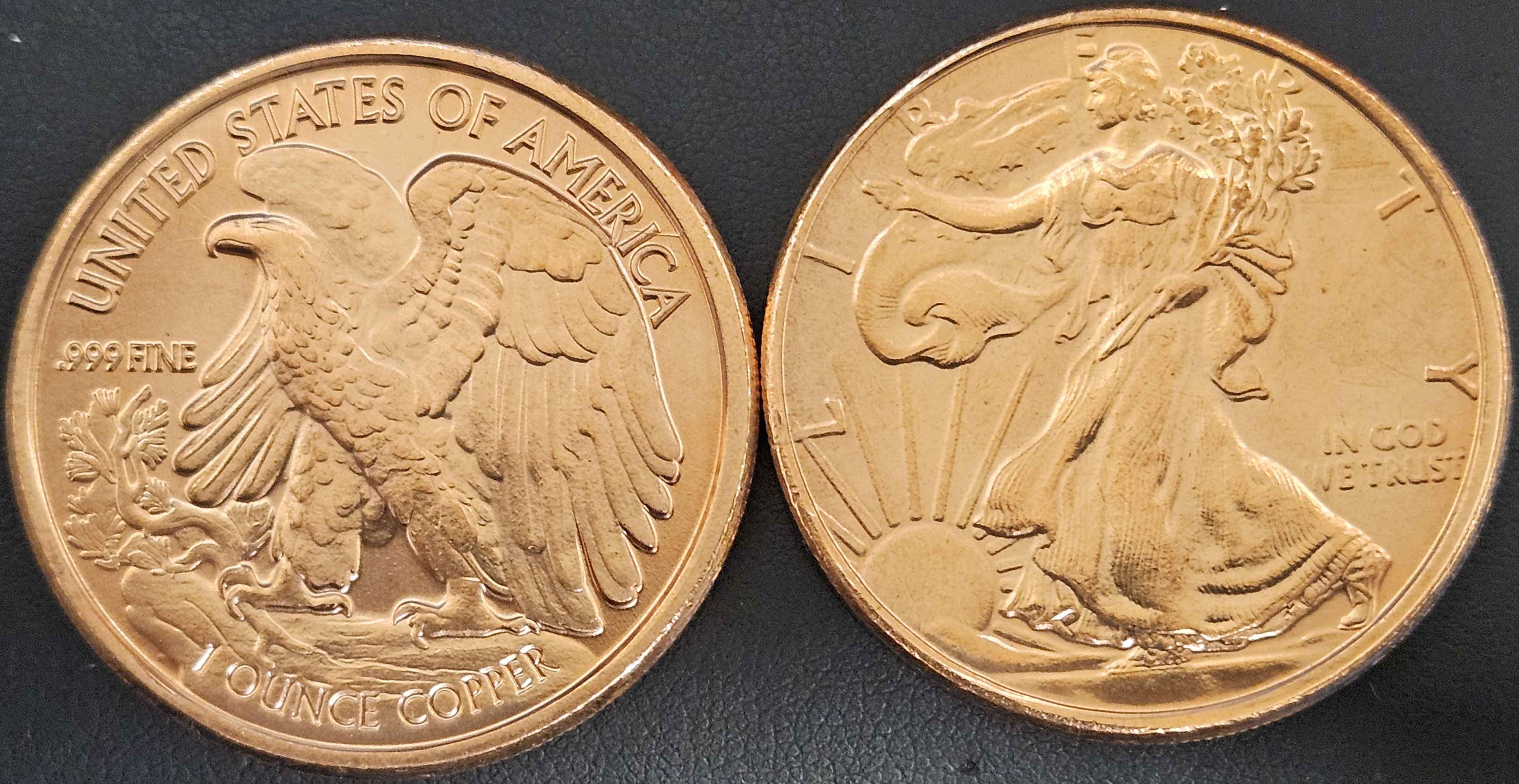 1 Ounce .999 Pure Copper - Walking Liberty Copper Rounds