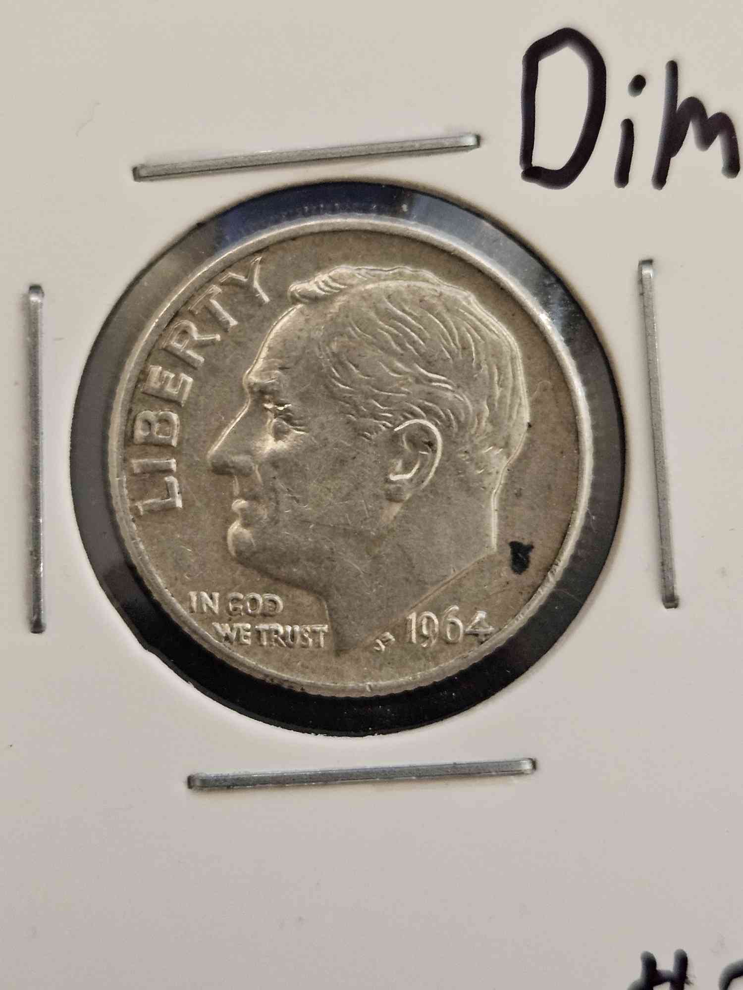 Unprofessionally graded by me, Extremely Fine condition. This Roosevelt Dime was made at the Denver Mint in 1964 out of an alloy of 90% silver and 10% copper.