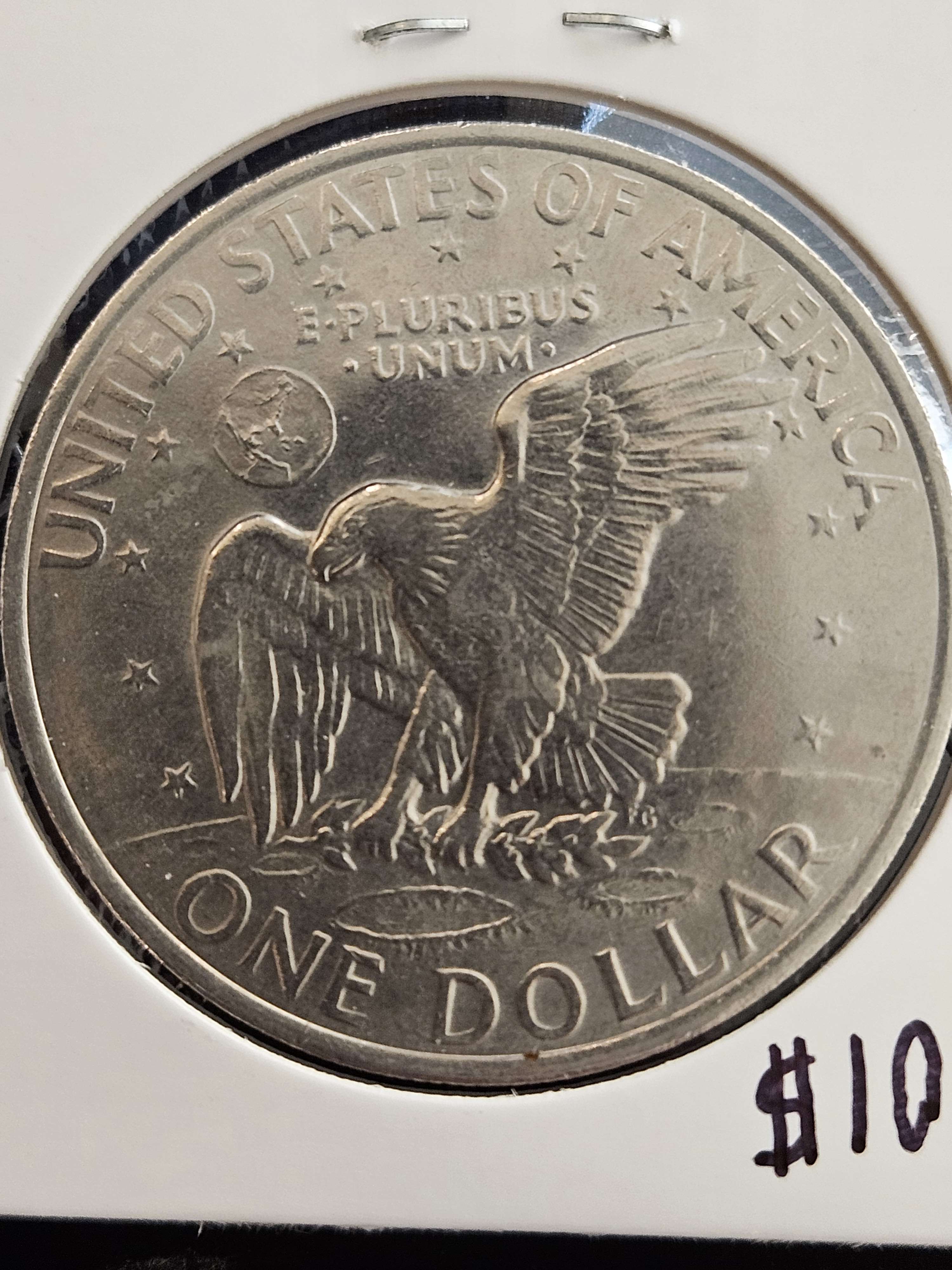 Unprofessionally graded by me in About Uncirculated condition. The Obverse side design of this Dollar coin is Dwight D. Eisenhower, who was a General in the US Army until he became President of the USA later on.